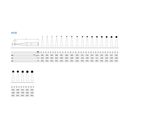 Komet #H71E - Round Carbide Milling Cutter Cross Toothing- Pack of 6 (sizes available: 0.30mm -2.30mm)